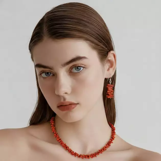Collier en corail inspiré de l’art berbère, apportant une touche de couleur vibrante et d’authenticité à votre style. Un bijou unique à porter avec fierté.