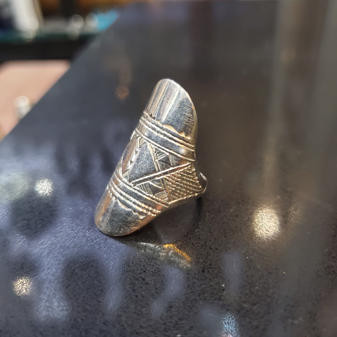 ​Achetez la bague berbère exclusive Lunja en argent 925. Gravure main motif Double Croix Margoum. Bijou Amazigh authentique certifié. Livraison avec certificat. Taille 54.