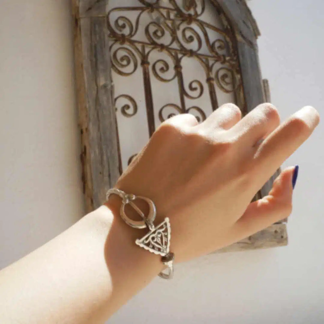 Plongez dans l’Histoire des BerbĂšres et des dynasties musulmanes de l’Afrique Septentrionale avec ce bijou inspirĂ© du patrimoine berbĂšre, Amazigh, kabyle. Chaque piĂšce raconte une histoire, symbolisant une tradition qui se prolonge au fil du temps.