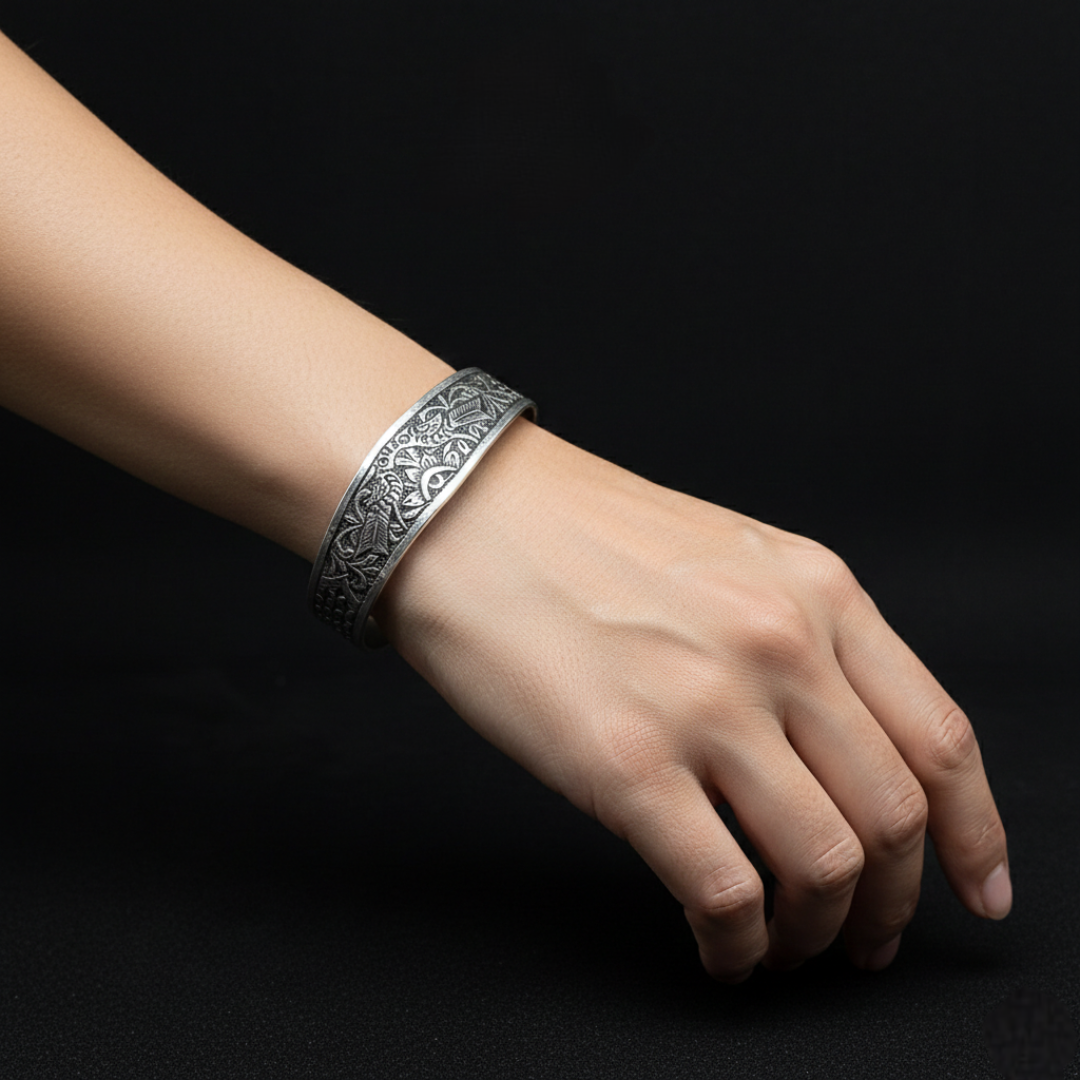 La conception de cette pièce est réalisée de manière artisanale, sans moulage ni sous pression, avec une gravure entièrement faite à la main. Découvrez les bienfaits de porter de l’argent, un métal reconnu pour ses propriétés bénéfiques sur la circulation des énergies, l’amélioration de l’humeur, la compensation des perturbations électriques et le renforcement du système immunitaire. L’argent est également réputé pour ses propriétés antibiotiques.